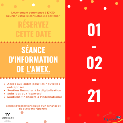 AWEX keeps you informed on subsidies that they offer. The conference will be followed by exchanges and Q&As.